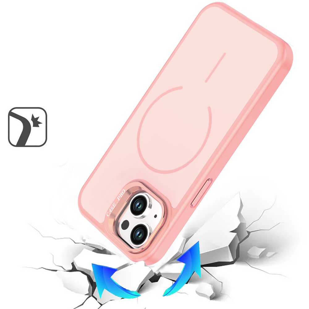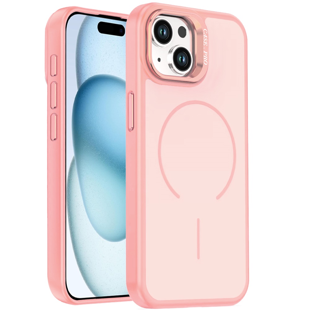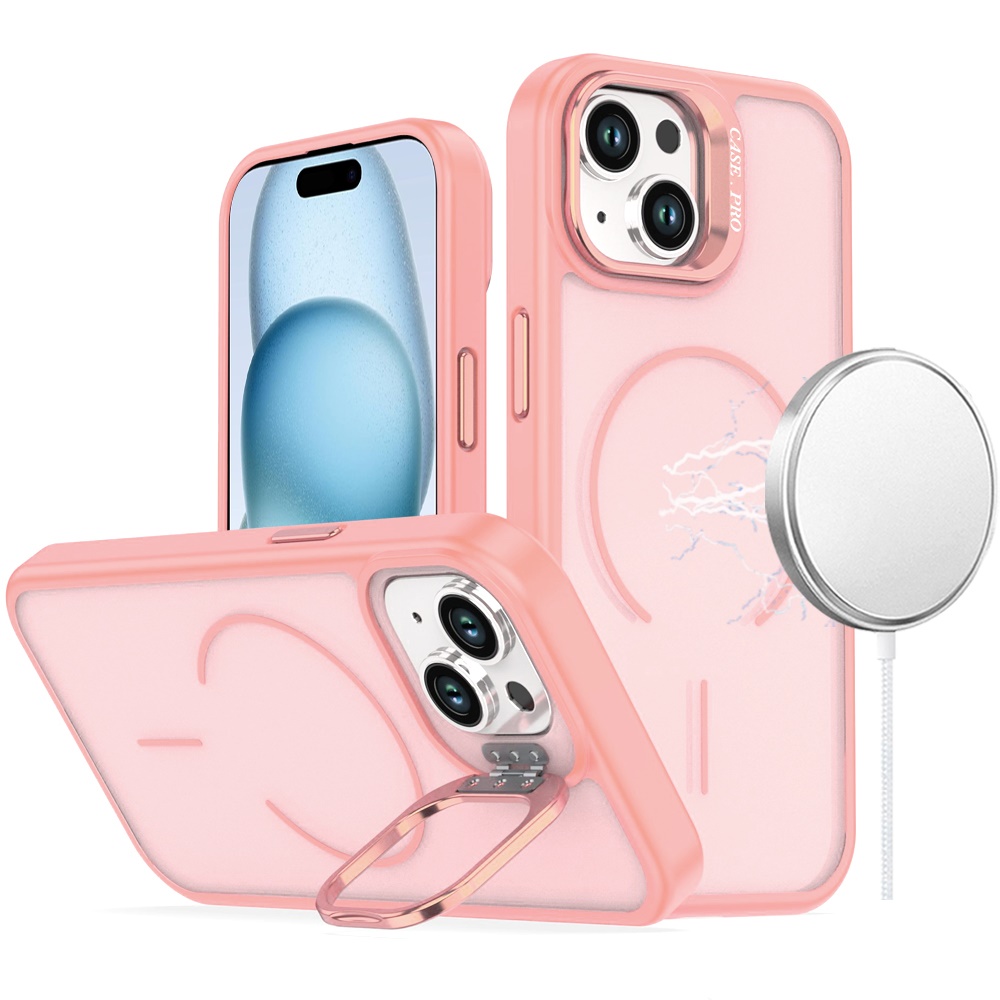 For iPhone 15 Magnetic Matte Camera Metallic Stand Hybrid Case - Pink