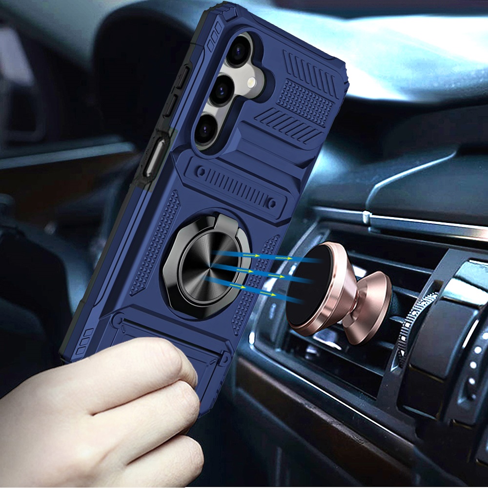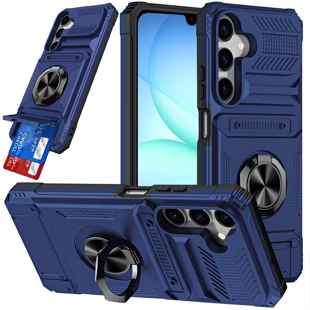 For Samsung A17 5G Multi-Functional 2X Card Slot Shockproof Metal Ring Hybrid Case - Blue