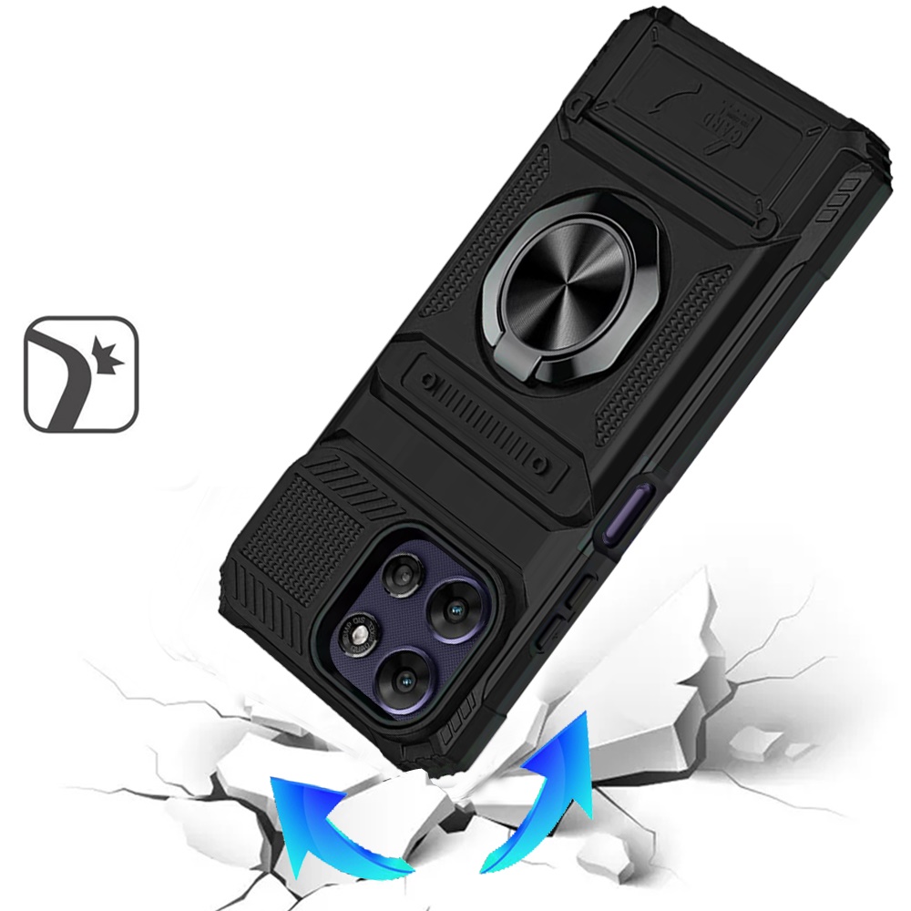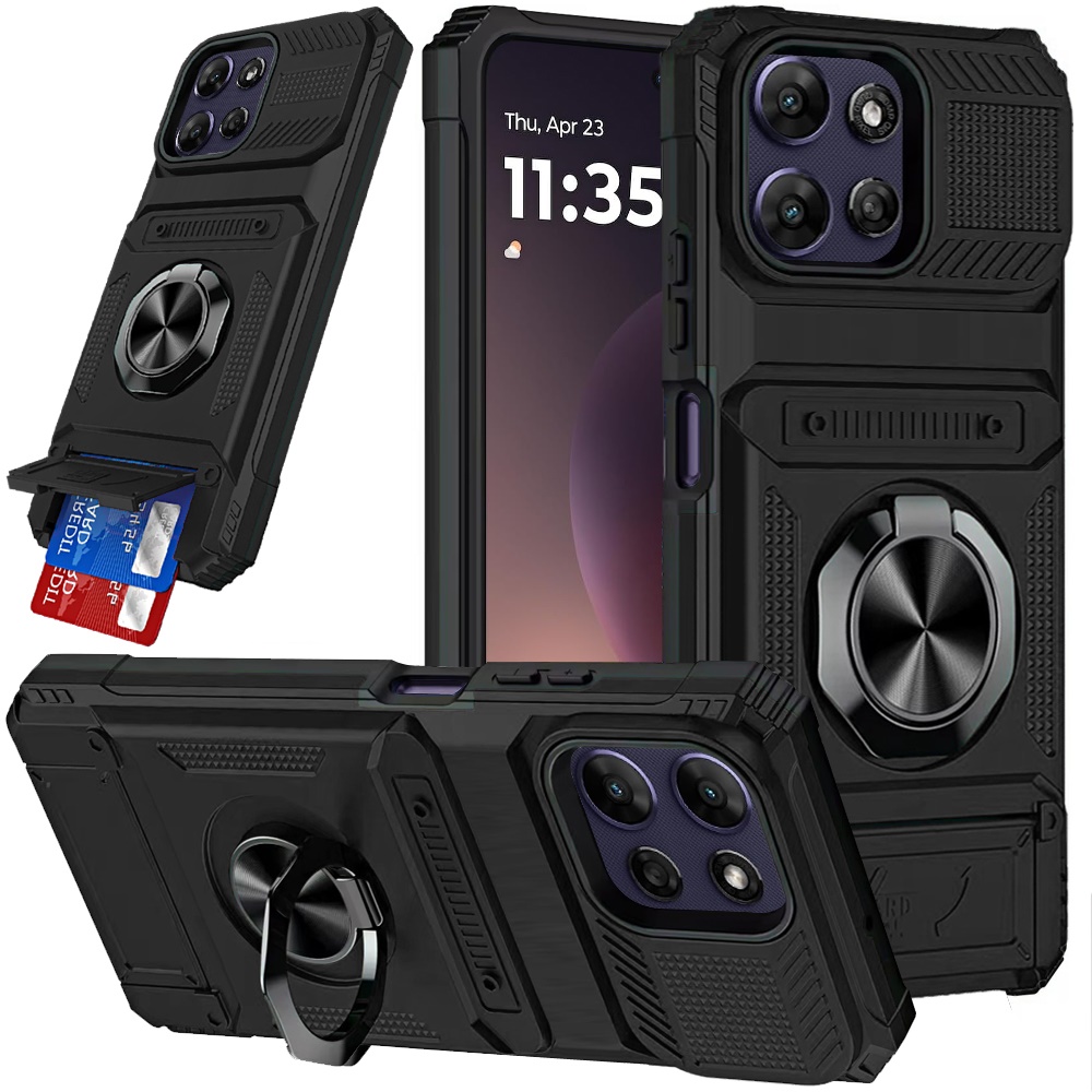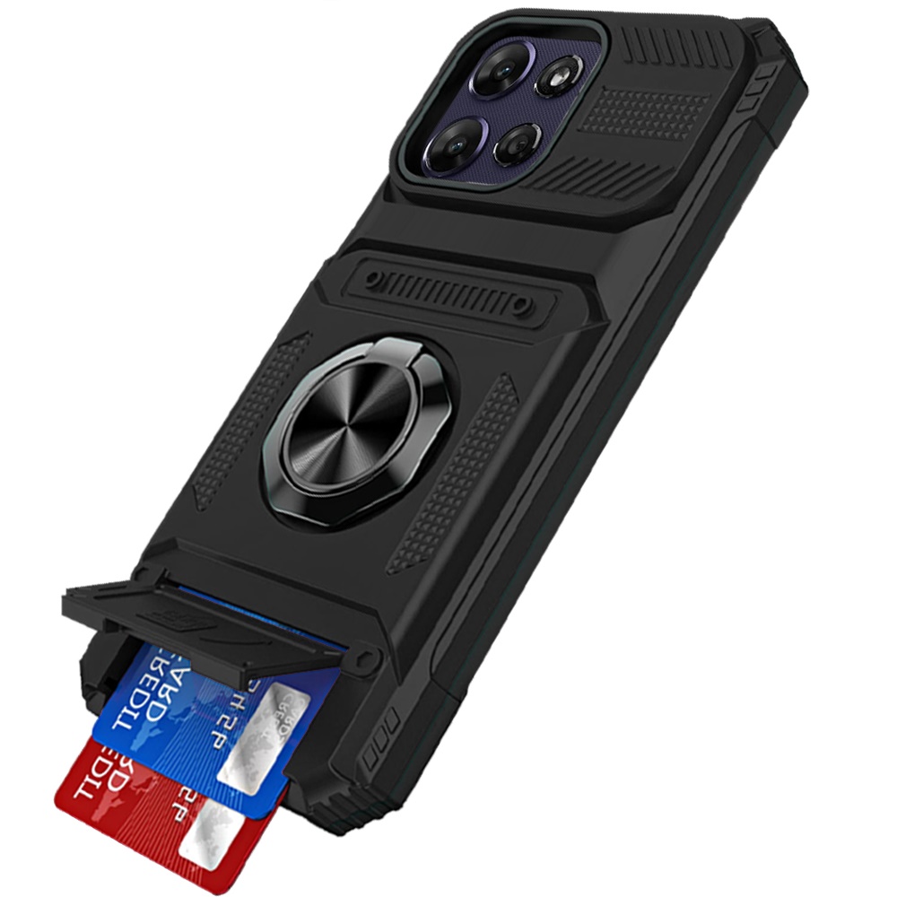 For Motorola Moto G Power 5G 2025 Multi-Functional 2X Card Slot Shockproof Metal Ring Hybrid Case - Black