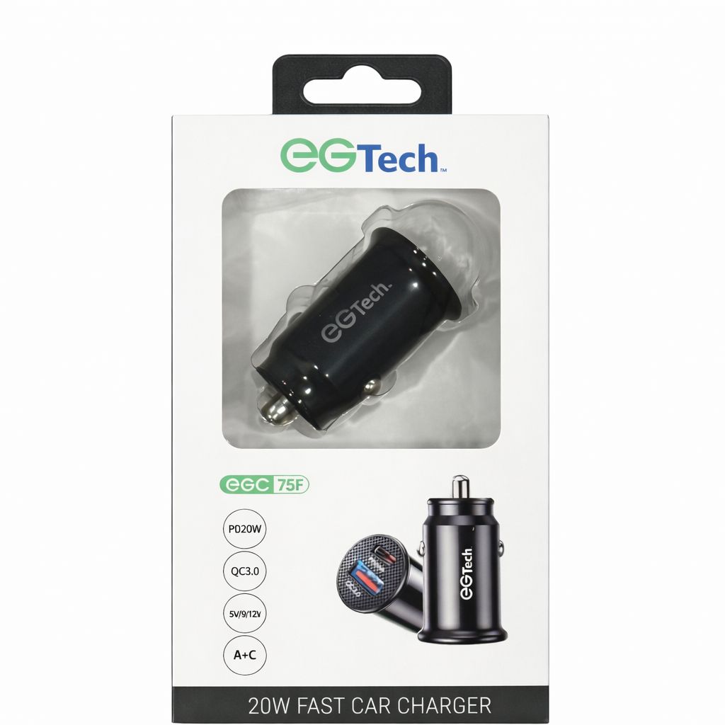 EGTECH 20W FAST CAR CHARGER DUAL PORT PD20W + QC3.0 USB-A AND TYPEC OUTPUT - BLACK (B10 EGTECH3)