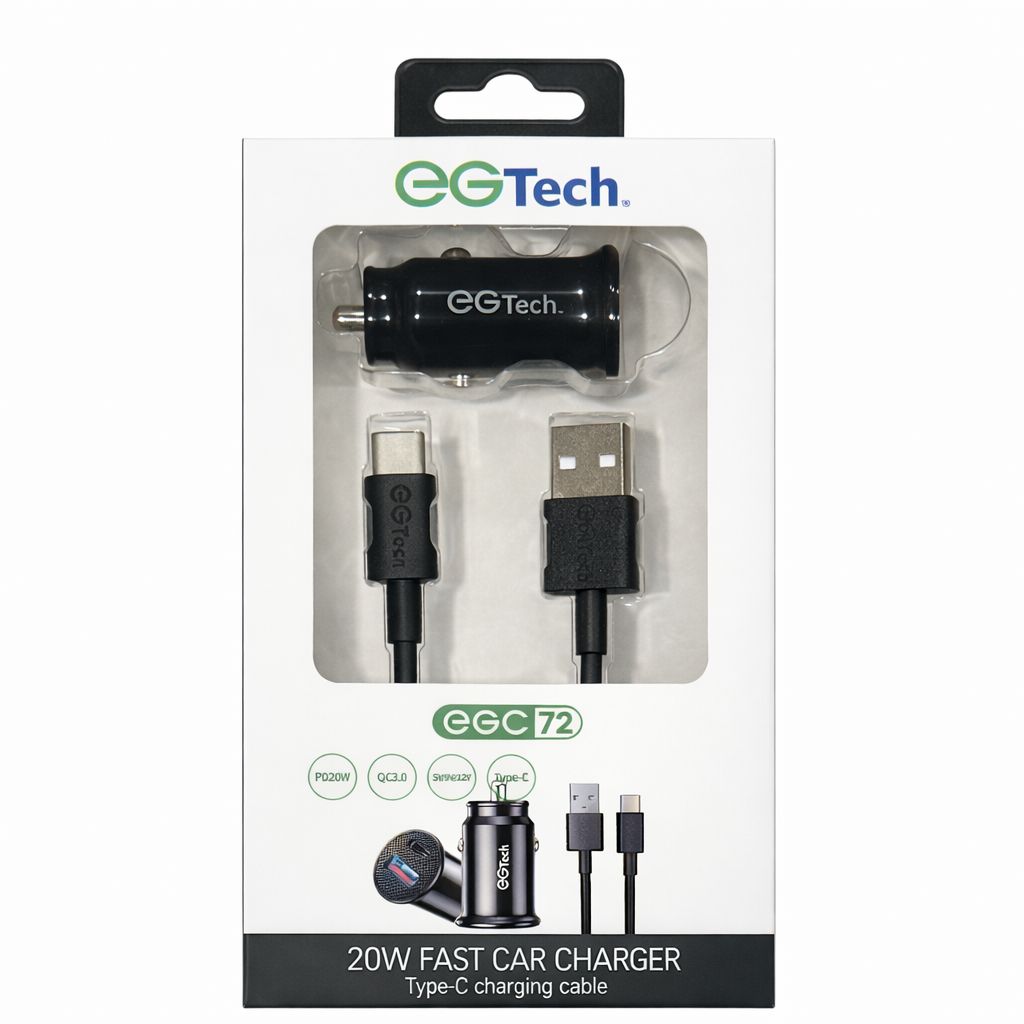 EG Tech 20W Dual USB A and USB C Car Charger with USB Type C Cable - BLACK (B10 EGTECH 5)