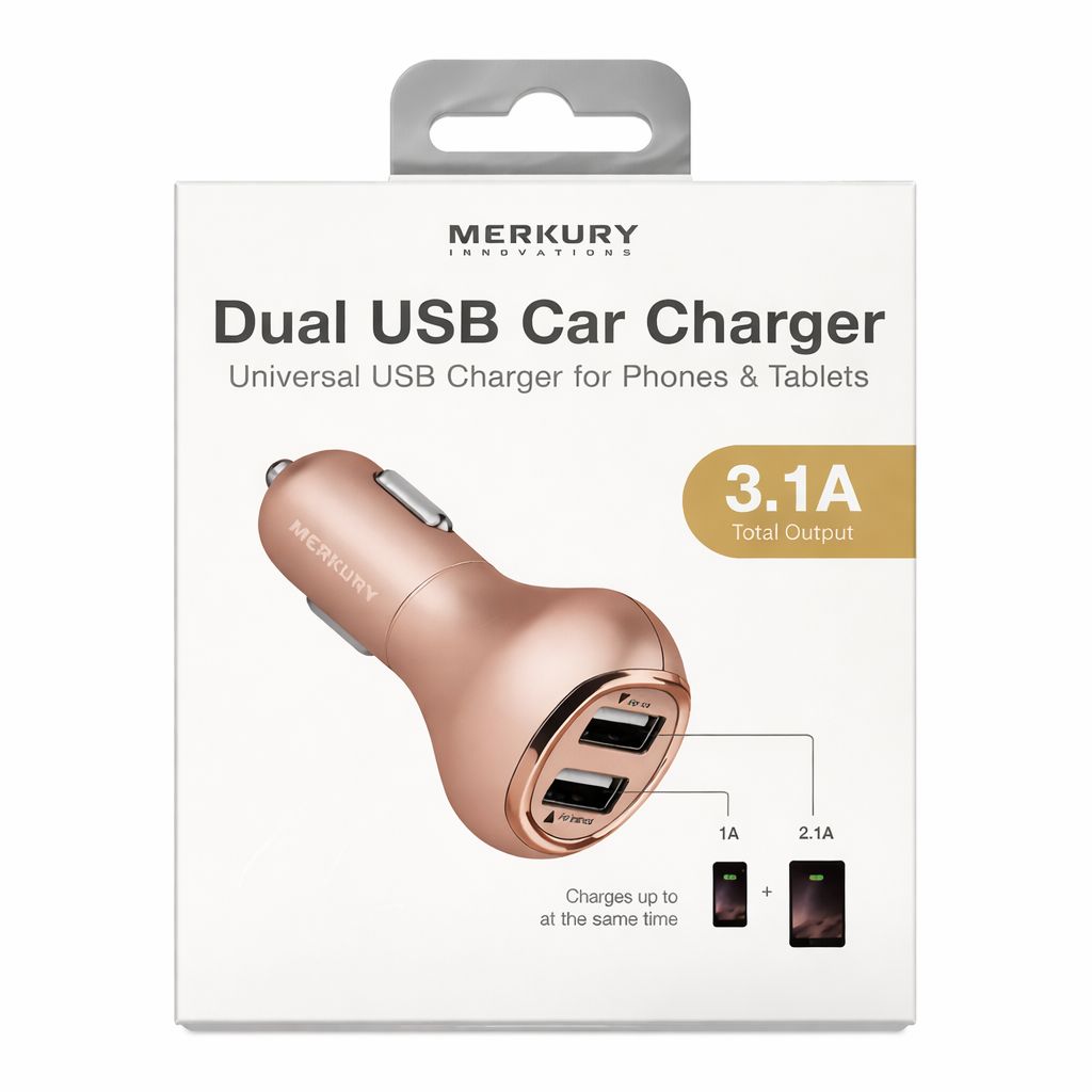 Merkury 3.1 Amp Dual USB Car Charger in Rose Gold (A4)