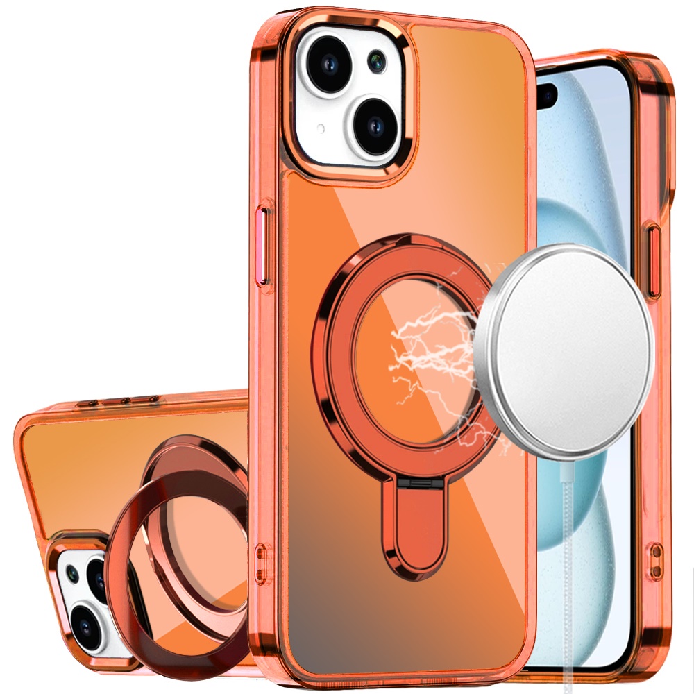 For iPhone 15 CHROME HQ Rotational Magnetic Ring Hybrid - Cosmic Orange