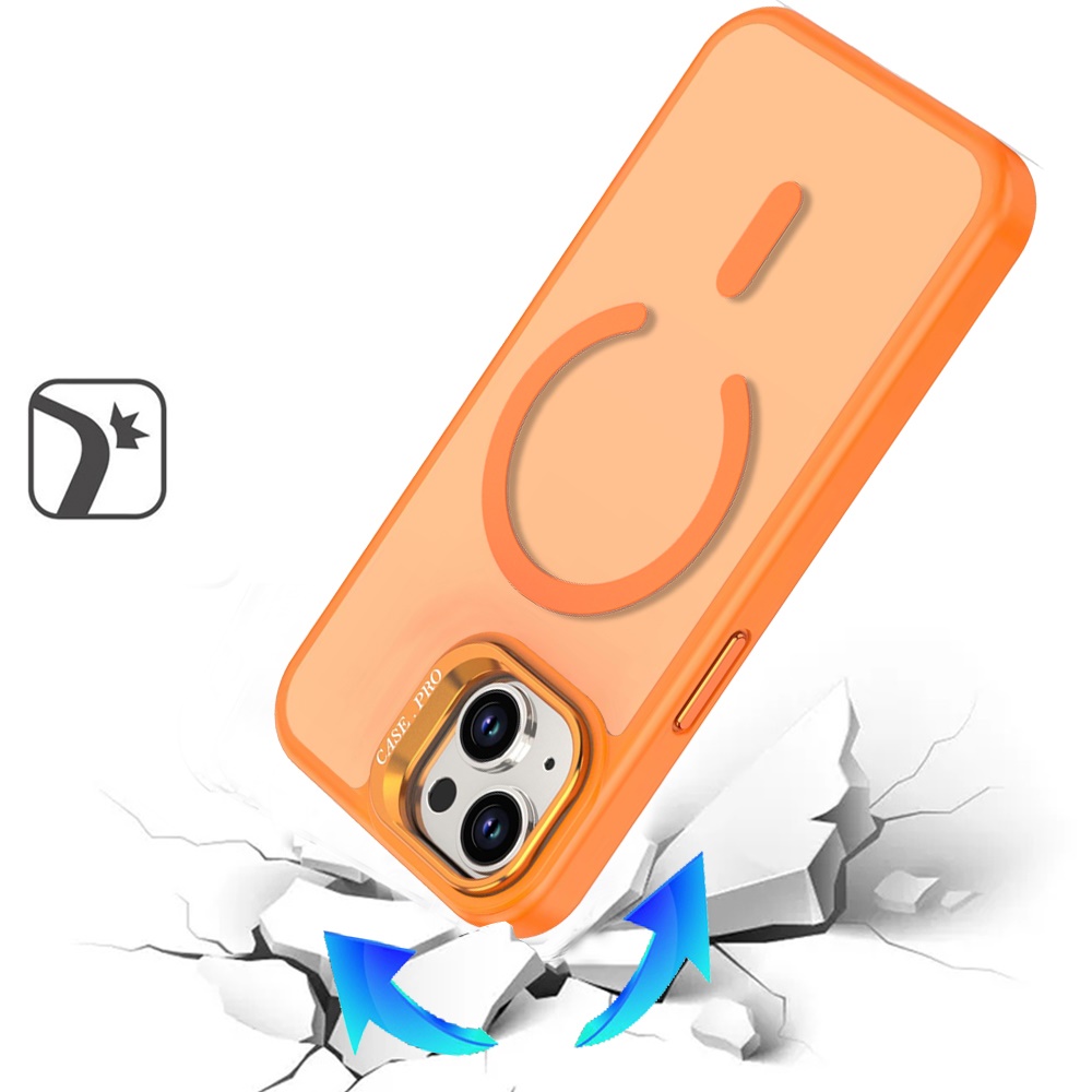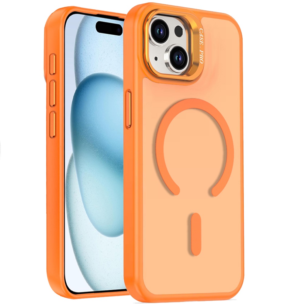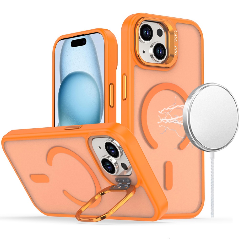 For iPhone 15 Magnetic Matte Camera Metallic Stand Hybrid Case - Cosmic Orange