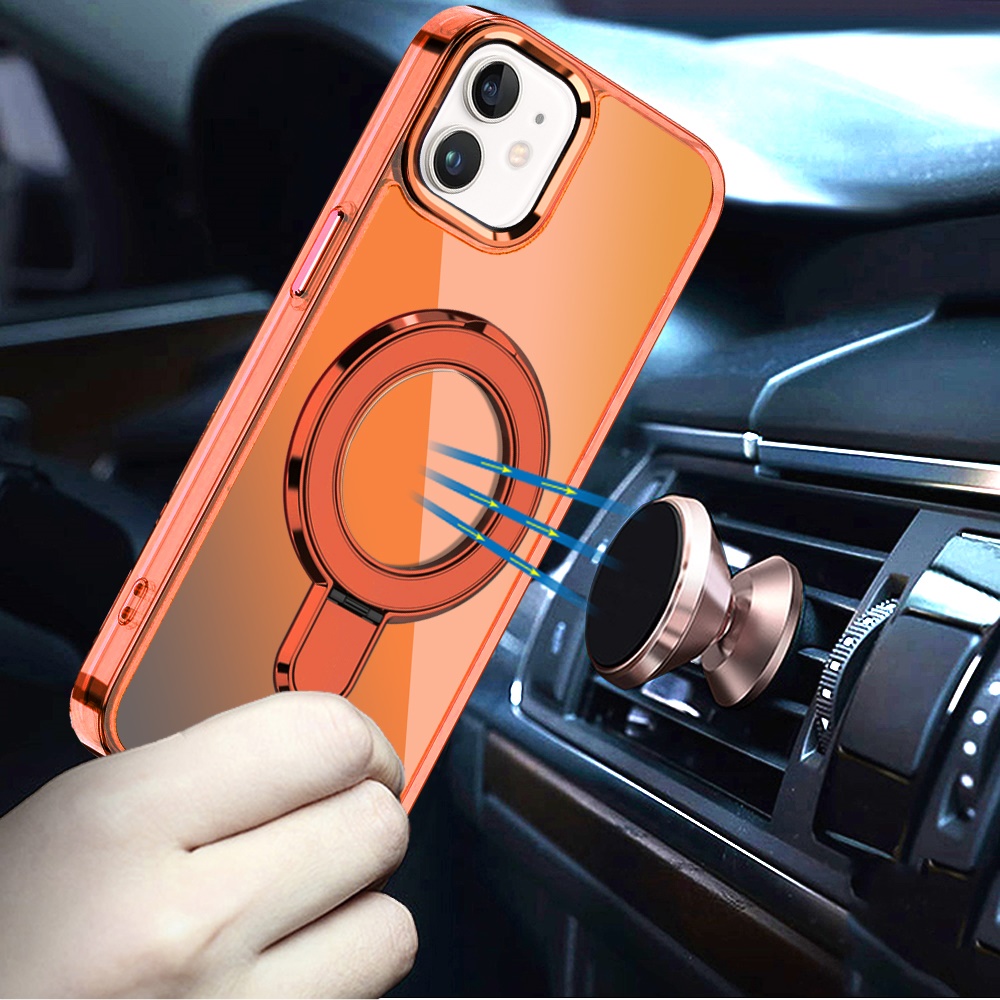 For iPhone 12 & iPhone 12 Pro CHROME HQ Rotational Magnetic Ring Hybrid - Cosmic Orange