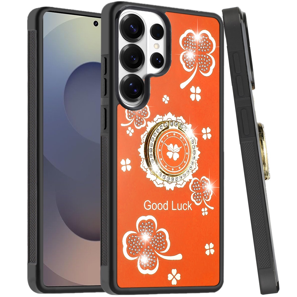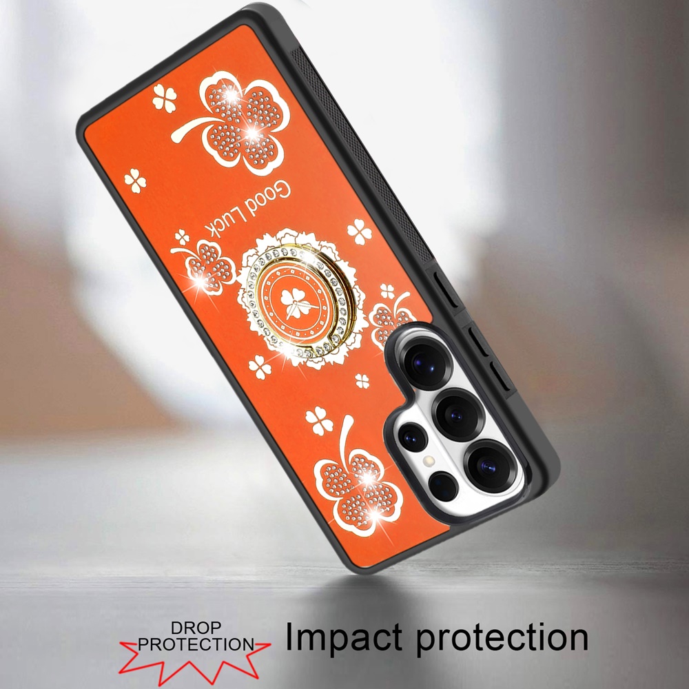 For Samsung s25 Ultra SPLENDID Diamond Glitter Ornaments Engraving Case Cover - Good Luck Floral Cosmic Orange