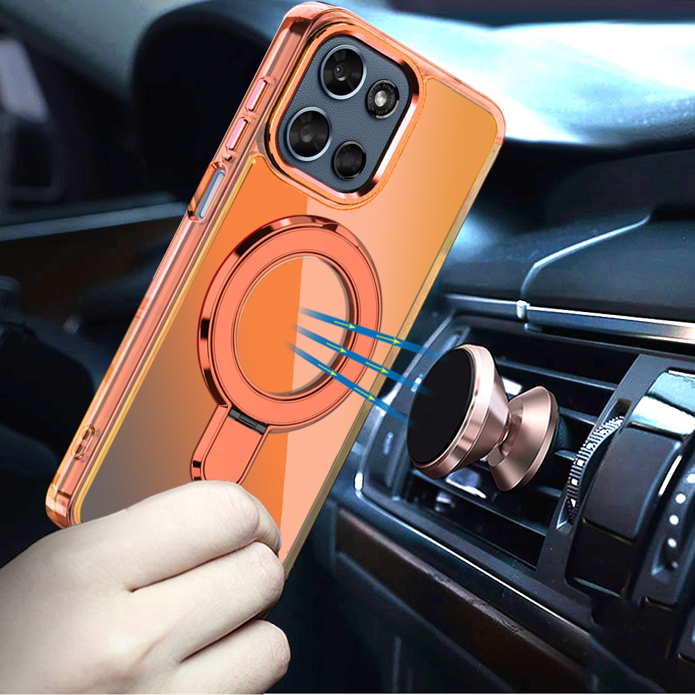For Motorola Moto G 5G 2025 CHROME HQ Rotational Magnetic Ring Hybrid - Cosmic Orange