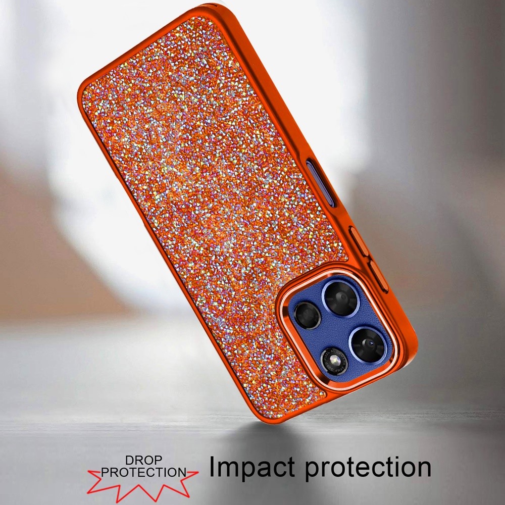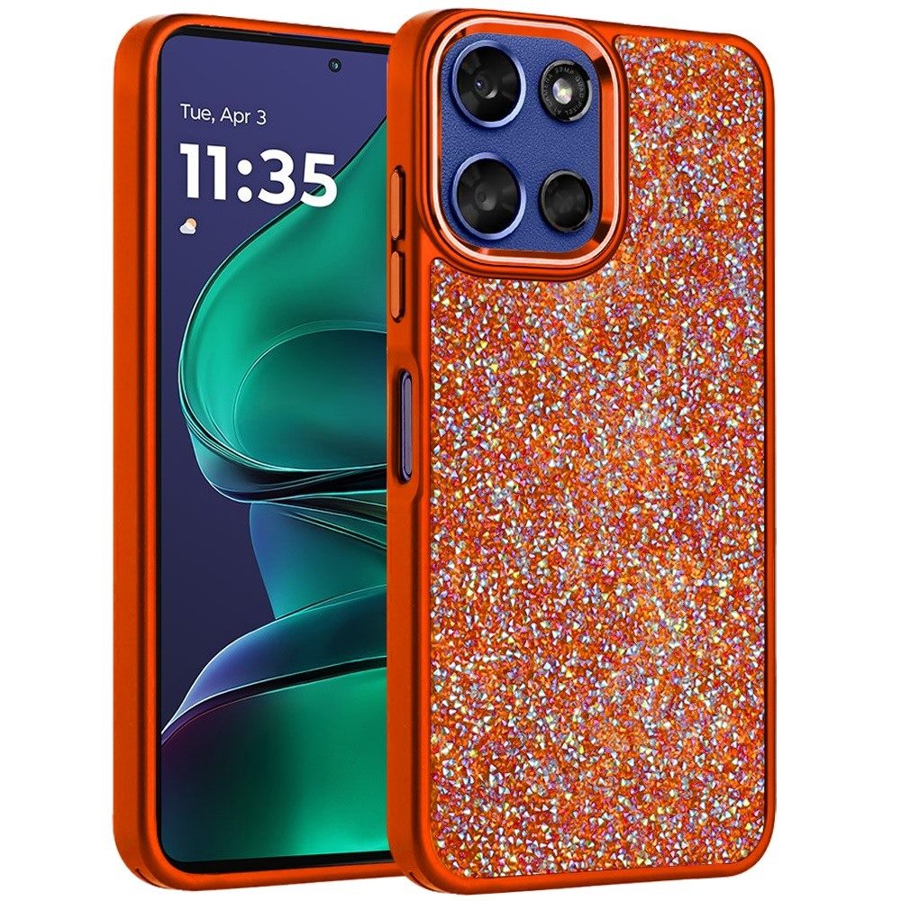 For Moto G Stylus 5G 2025 Crystal Glass Diamond with Metallic Buttons and Edges Hybrid Case - Cosmic Orange