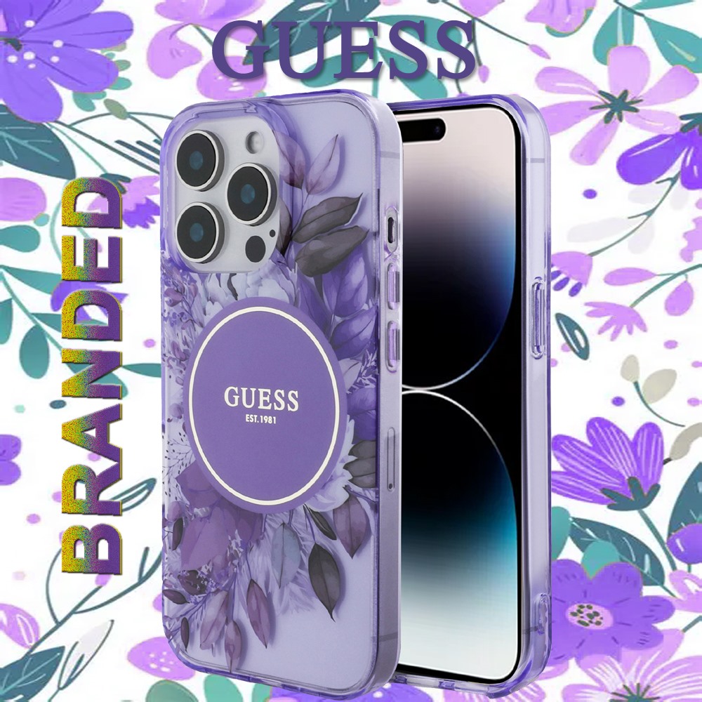 For IP 14/ IP 13 - GUESS MAGSAFE IML FLOWER & TONAL CIRCLE - Purple