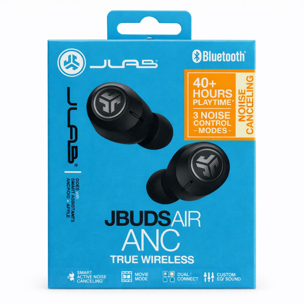 JLab JBuds Air ANC True Wireless Bluetooth Earbuds Black Active Noise Canceling Low Latency Movie Mode Dual Connect IP55 Sweat Resistance Custom 3 EQ Sound - BLACK (A3 JLAB - 3)